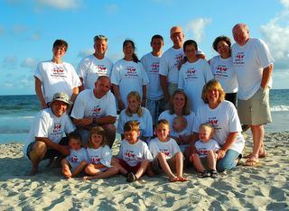 Summer has been incredible. Vacation to Oak Island, NC with the whole family, I mean the entire lot. Pictured here is my partner Michael, his two sons, Max and Frank, Max’s girlfriend Adelle, my daughters Katie,husband Doug, kids Stephie and Scotty, Kelly and Brian, Ben, Danny, Thomas and my ex-husband Tom, his wife Ro and her daughter Darcy, husband Doug and son Nick. Is it any wonder that Tom had T shirts made for us all that said “We put the fun back in dysfunctional?” Katie and Doug wore their T shirts to the market one day and people kept stopping them to say, “my family needs those shirts.”